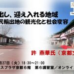 2025年12月10日 / 最終更新日時 : 2025年12月11日 kyoto-minzoku 談話会のお知らせ 第380回談話会 論題 人を送り出し、迎え入れる地域 移民輸出地の観光化と社会変容日時 2026年1月27日(火)18:30〜21:00開催 キャンパスプラザ京都 6階 第6講習室 / オンライン(zoom)(京都市下京区西洞院通塩小路下 […]